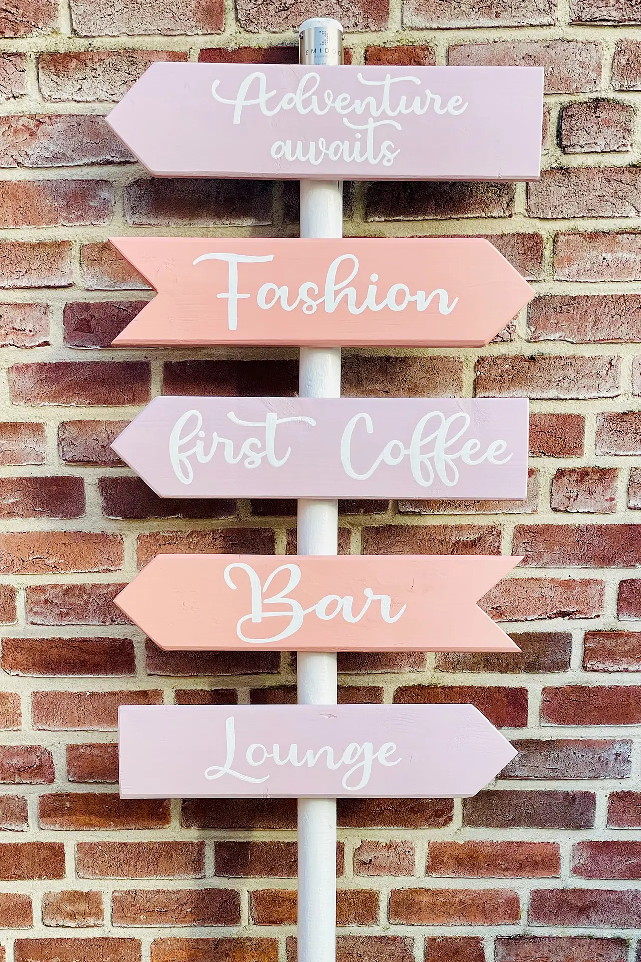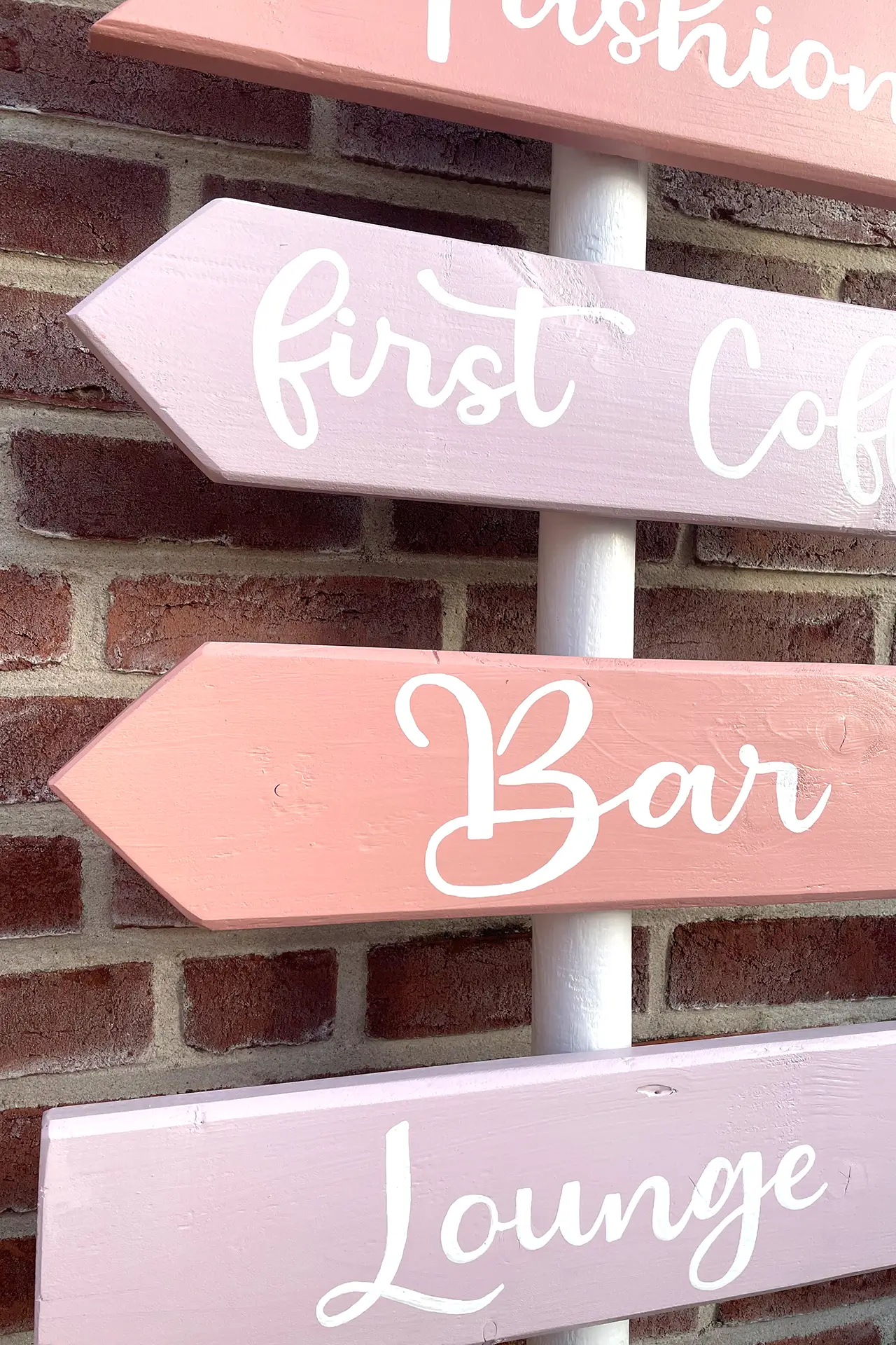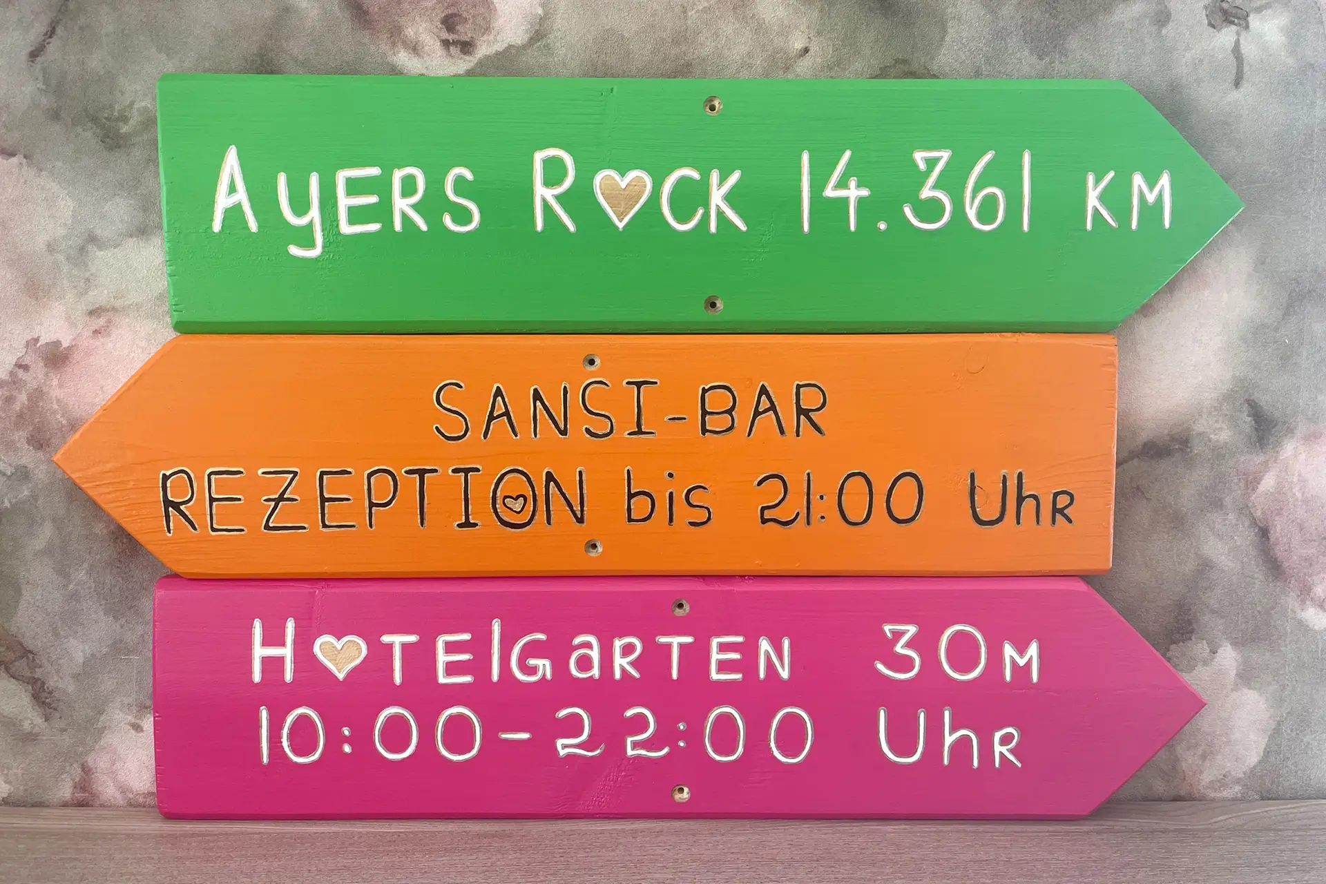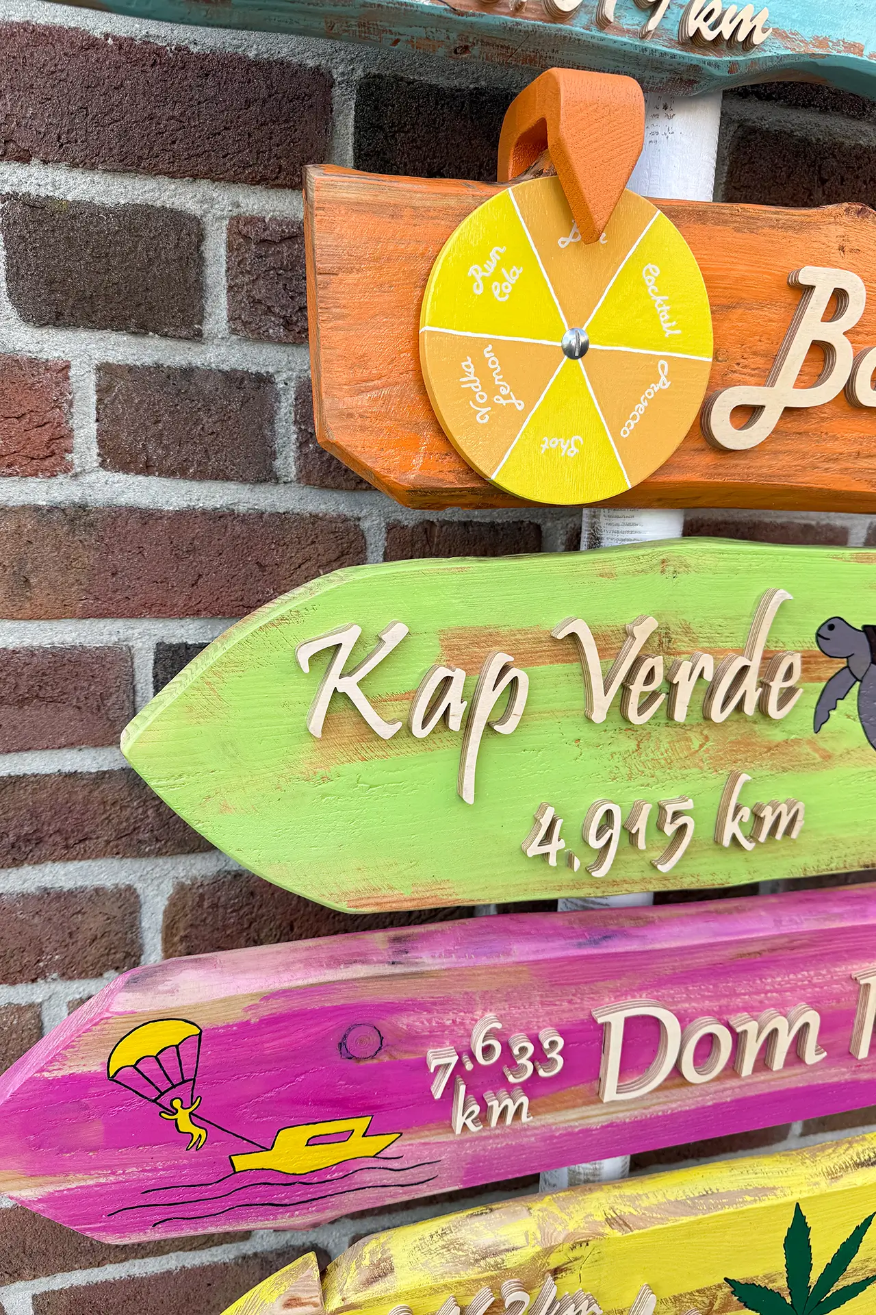 Liebevoll gestaltete Wegweiser aus nachhaltigem Holz: Handgemacht, wetterfest und für jeden Anlass der passende Blickfang.